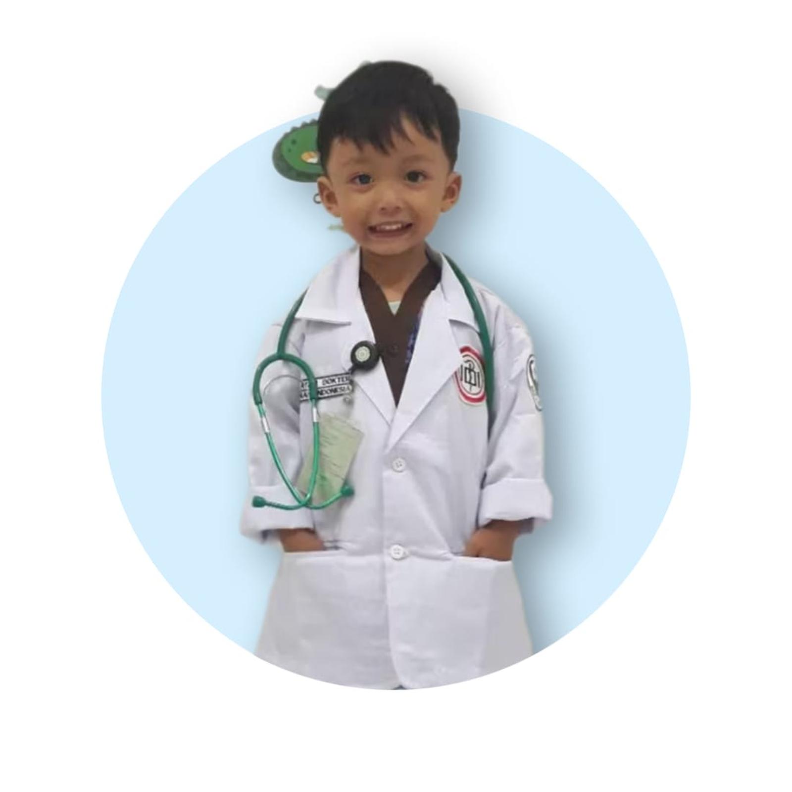 Desainnya unisex, cocok untuk anak laki-laki dan perempuan. Barang READY STOK! Segera pilih varian ukuran yang sesuai untuk buah hati Anda. Harga yang tertera khusus untuk setelan jas, tidak termasuk stetoskop (dijual terpisah).