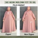 Bingung saat hujan tiba-tiba turun saat bermotor? Jas hujan biasa terlalu ribet dan tidak syar’i? Kini hadir Jas Hujan Gamis Muslimah dengan desain khusus untuk Hijabers! Tanpa perlu celana tambahan, langsung pakai seperti gamis biasa. Desainnya simpel (tersedia model zipper dan non-zipper), lebar di bagian bawah, dan bisa dilipat masuk ke tas 30 liter. Cocok untuk aktivitas outdoor tanpa khawatir basah atau kurang fashionable!