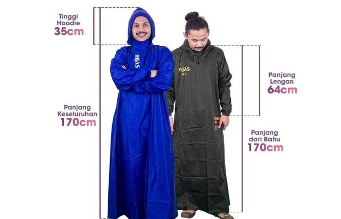 Keunggulan produk ini meliputi jahitan rapi yang mencegah rembesan air, hoodie (penutup kepala) yang dapat diatur kekencangannya, serta tali leher internal untuk perlindungan ekstra dari terpaan angin dan air. Desainnya yang simpel dan berpola A membuatnya mudah dipakai, dilipat, dan disimpan, bahkan cukup masuk ke dalam tas berkapasitas 30 liter.