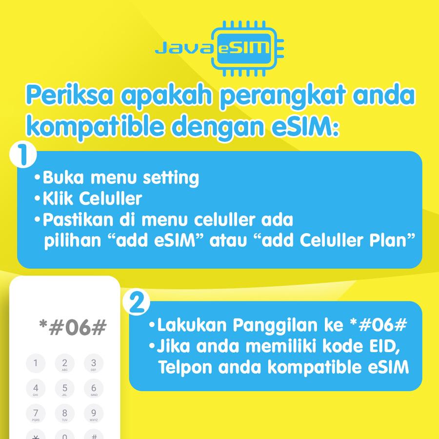 - Cek kompatibilitas HP (dial *#06# untuk memastikan ada EID).