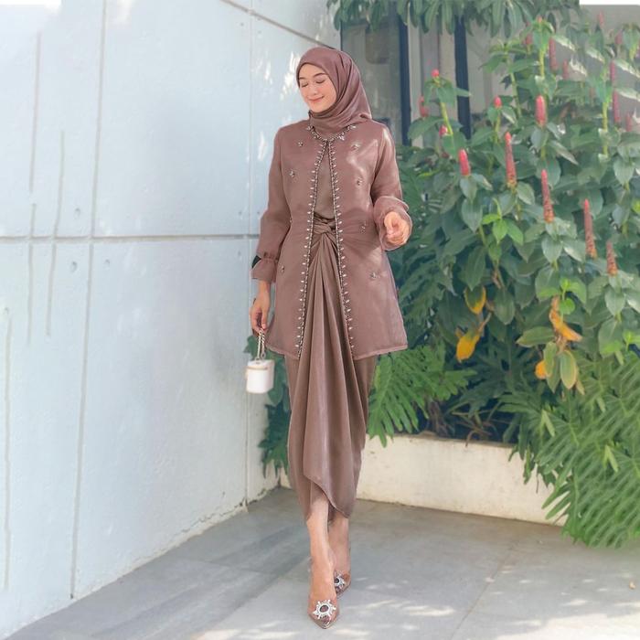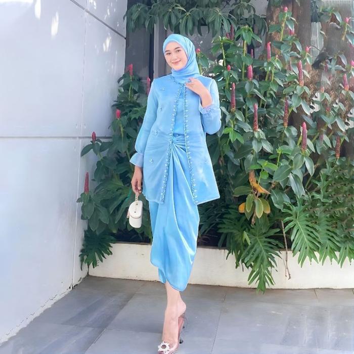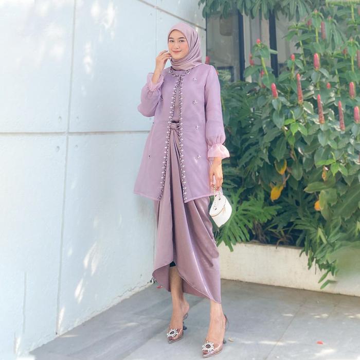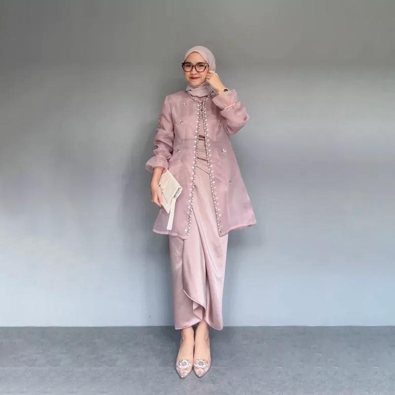 Tampil memukau di setiap momen spesial dengan busana kebaya muslim Jeema yang elegan dan penuh kemewahan. Satu set lengkap ini terdiri dari atasan kebaya, inner, outer, dan rok lilit organza berkualitas tinggi. Dihiasi payet dan mutiara yang berkilauan, setiap detail dirancang untuk memberikan kesan anggun dan sofistikated.
