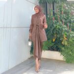 Desain EksklusifPaduan inner, outer, dan rok lilit yang modern dan feminin.