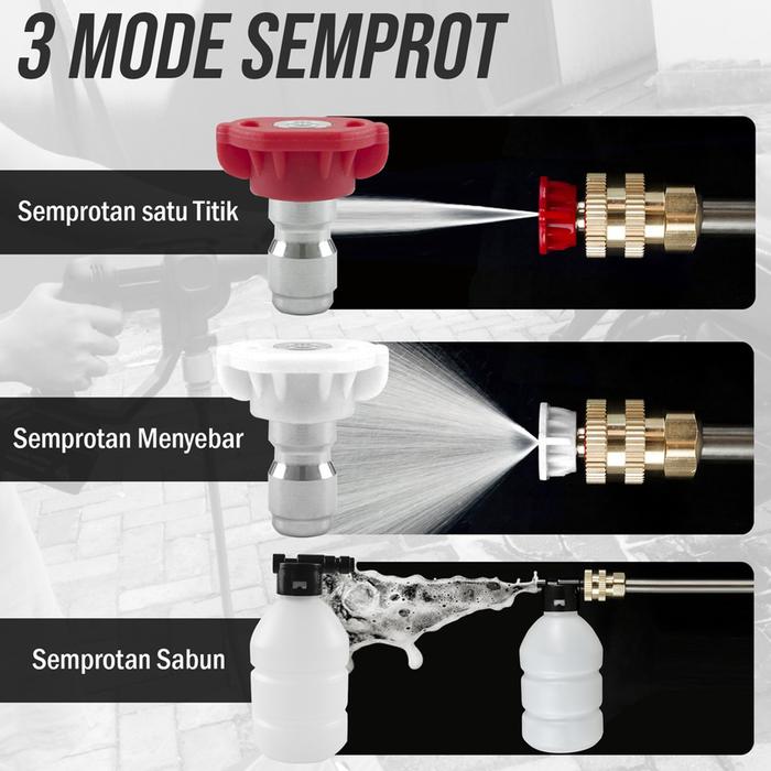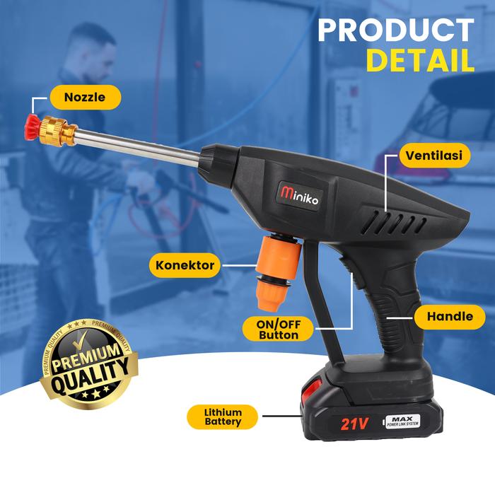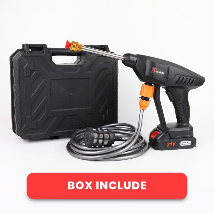 Dilengkapi dengan baterai lithium 2000mAh yang dapat diisi ulang, Anda bebas bergerak tanpa tergantung pada listrik atau sumber air. Aliran air 4L/min memastikan proses pembersihan cepat dan sangat hemat air dibandingkan cuci tradisional. Panjang selang 5 meter memberikan jangkauan yang luas, membuat Anda leluasa membersihkan atap mobil atau bagian bawah kendaraan.
