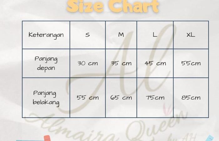 UkuranTersedia S, M, L, XL (lihat tabel detail ukuran di bawah).