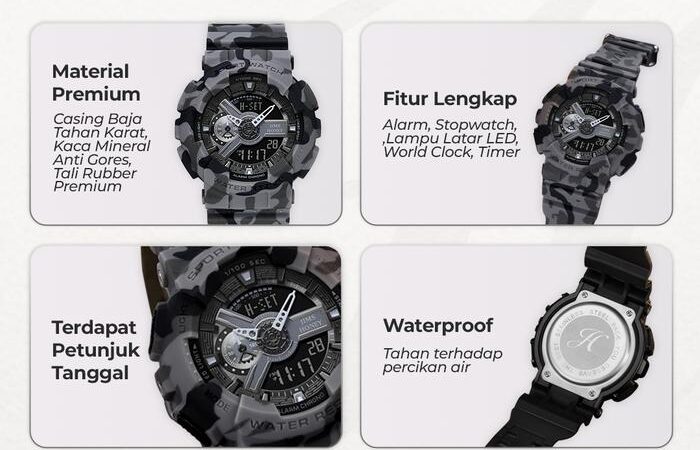 | Material Case | Stainless Steel (tahan karat dan awet) | |