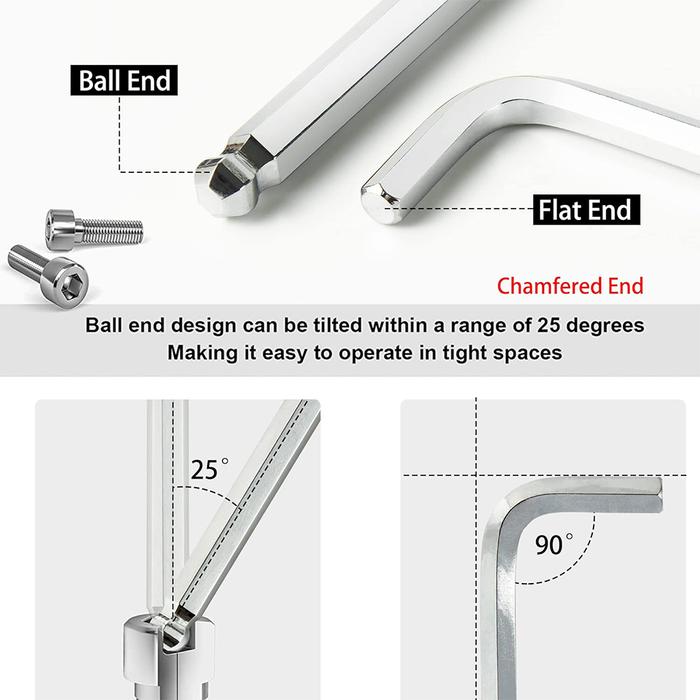 - Kunci Bola (Ball End): Ujung kunci hex yang berbentuk bulat, memungkinkan alat untuk masuk ke sekrup dengan sudut kemiringan hingga 25 derajat, sangat berguna untuk menjangkau sekrup yang sulit diakses.