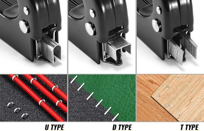 - Staples Tipe D/T50: Staples berbentuk persegi panjang untuk material umum seperti kertas/kayu.