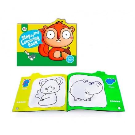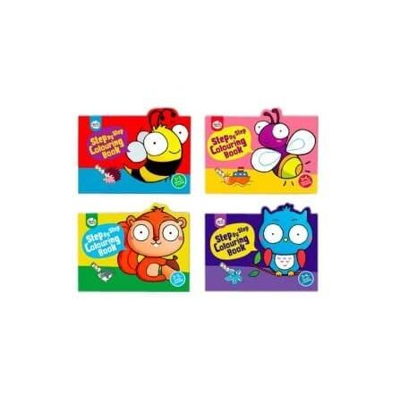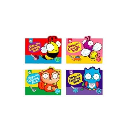 - Step By Step Coloring Book: Buku mewarnai yang menyediakan instruksi bertahap, dimulai dari bentuk dasar hingga gambar utuh, untuk memudahkan anak belajar menggambar.