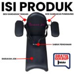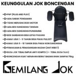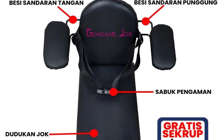 Busa jok menggunakan bahan premium Inoac tebal 5 cm, empuk, nyaman, dan anti kempes. Lapisan kulit sintetis berkualitas tinggi bersifat waterproof (anti air), sehingga mudah dibersihkan dan tahan lama. Boncengan dirancang anti goyang, aman untuk anak usia 1 hingga 10 tahun dengan berat maksimal 75 kg.