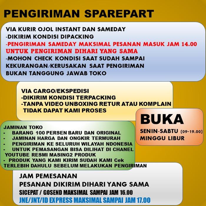 - Produk telah dicek sebelum dikirim, komponen lengkap dan berfungsi baik. Kerusakan/kekurangan/keterlambatan pengiriman di luar tanggung jawab kami.