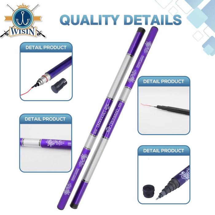 Tingkatkan pengalaman memancing Anda dengan joran teleskopik Wisin. Dirancang khusus untuk pemancing dari pemula hingga profesional, joran ini menawarkan kombinasi kekuatan, kepraktisan, dan kualitas terbaik. Terbuat dari material serat kaca (fiber hollow) berkualitas tinggi yang menjadikannya sangat keras dan kokoh, bahkan hingga menahan beban maksimal 8kg. Dengan berat hanya antara 100-250g, joran ini super ringan sehingga tidak membuat tangan cepat lelah.