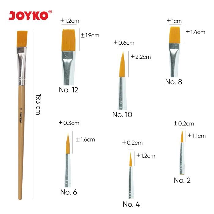 Tingkatkan karya seni Anda dengan set kuas lukis serbaguna Joyko BR-5. Satu paket berisi 6 buah kuas dengan ukuran berbeda (No. 2, 4, 6, 8, 10, dan 12) yang dirancang khusus untuk memberikan presisi dan fleksibilitas dalam setiap goresan.