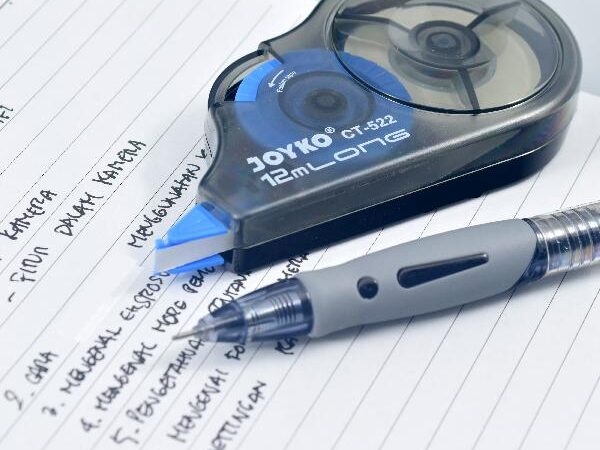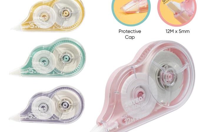 - Correction Tape / Tip X Kering: Alat koreksi berbentuk pita yang berfungsi untuk menutupi kesalahan tulisan di atas kertas. Berbeda dengan tipex cair yang perlu dikeringkan, correction tape langsung kering, tidak berbau, dan hasilnya lebih rapi.