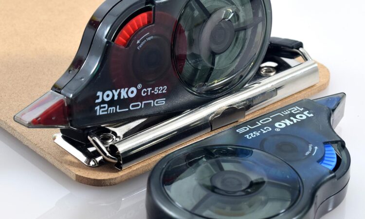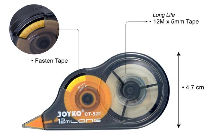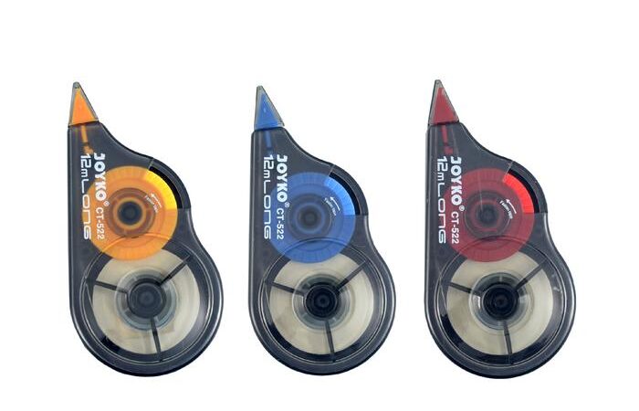 - Correction Tape: Sebuah alat untuk memperbaiki kesalahan dalam tulisan dengan cara menempelkan lapisan tipis berwarna putih di atas kata yang salah, menggantikan fungsi tipex cair konvensional. Hasilnya langsung kering, rapi, dan dapat langsung ditulisi di atasnya.