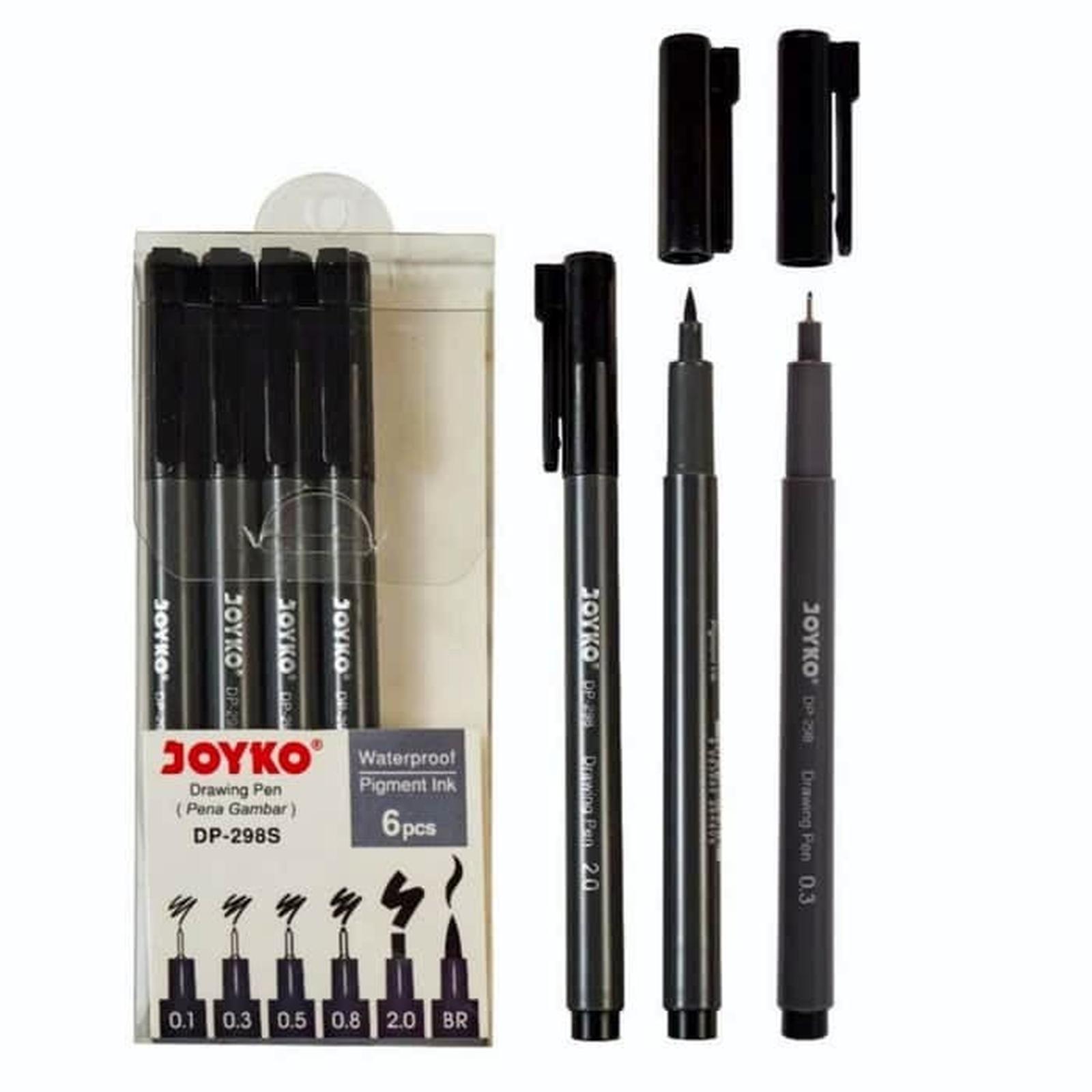 Tingkatkan kualitas karya seni dan teknik Anda dengan set pena andalan para profesional. Joyko Drawing Pen DP-298S hadir dalam set lengkap 6 ukuran (0.1, 0.3, 0.5, 0.8, 2.0, dan BR) yang dirancang untuk memberikan kontrol dan ketebalan garis yang variatif.