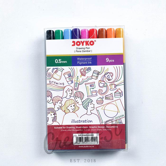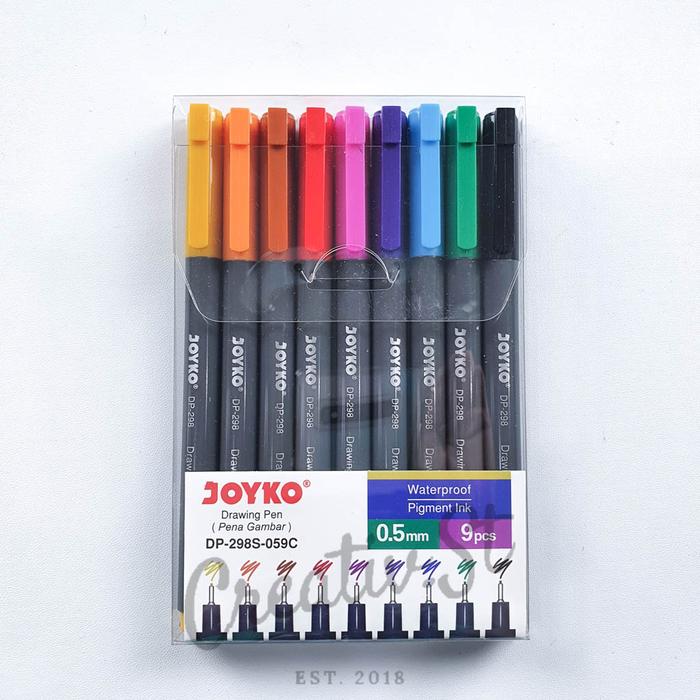 Tingkatkan presisi dan detail dalam setiap goresan dengan Joyko Drawing Pen Set. Set ini berisi 6 buah drawing pen berkualitas tinggi dengan ukuran mata pena yang beragam, mulai dari ultra halus 0.1mm hingga broad 2.0mm dan brush pen untuk efek kuas yang dinamis. Tinta hitam pekatnya memiliki kualitas waterproof, cepat kering, dan tahan lama, menjadikannya sempurna untuk teknik arsir, outlining, sketsa, manga, hingga ilustrasi digital.