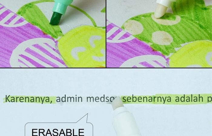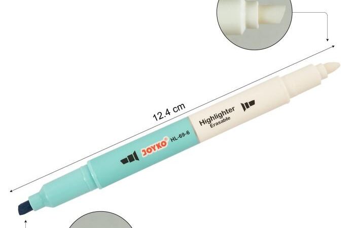 Cukup gunakan ujung penghapus yang terdapat pada bagian belakang highlighter untuk menggosok area yang ingin dihilangkan. Tinta khususnya akan menghilang tanpa merusak kertas, memberikan Anda kebebasan untuk bereksperimen dan mengoreksi.
