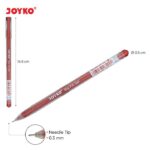 Tingkatkan pengalaman menulis Anda dengan Joyko Gel Pen GP-330 Big Fill. Dirancang dengan ujung jarum presisi 0.5 mm, pulpen ini menjamin setiap goresan halus, tajam, dan akurat tanpa tinta yang mengumpal. Dengan panjang 14.5 cm, pena ini nyaman digenggam untuk aktivitas menulis sehari-hari yang panjang.