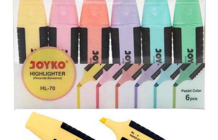 Tingkatkan produktivitas dan organisasi catatan Anda dengan set highlighter pastel yang lembut dan eye-catching dari Joyko. Set HL-70 ini dirancang khusus untuk memberikan warna yang tidak terlalu mencolok, mengurangi ketegangan mata, dan cocok untuk semua kebutuhan studi maupun kerja Anda.