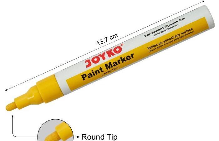 Tingkatkan kreativitas dan proyek marking Anda dengan Joyko Paint Marker. Spidol cat permanen ini dirancang khusus untuk memberikan hasil yang maksimal pada berbagai permukaan. Dengan ujung pena (tip) berbentuk bulat (round tip), Anda dapat dengan mudah mengontrol ketebalan garis untuk hasil yang presisi, baik untuk tulisan maupun gambar.