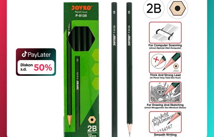 Memenuhi kebutuhan menulis, mengarsir, menggambar, dan sketsa dengan kualitas tinggi, Joyko P-8126 2B adalah pilihan tepat untuk pelajar, seniman, dan profesional. Pensil ini dirancang dengan ketebalan dan kekuatan optimal untuk hasil yang presisi dan tahan lama.