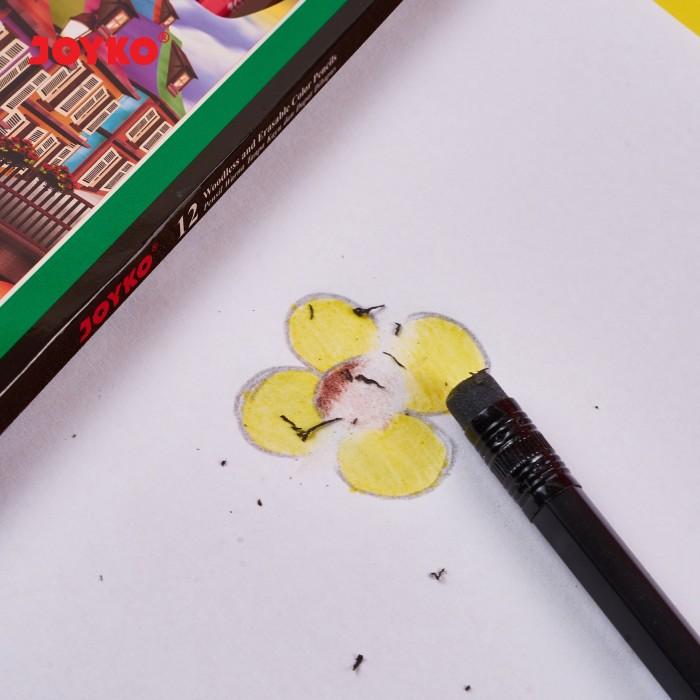 Warnai dunia imajinasimu dengan bebas tanpa takut salah! Joyko Erasable Color Pencils adalah pensil warna inovatif yang dapat dihapus layaknya pensil biasa. Kini berkreasi jadi lebih menyenangkan dan bebas khawatir karena setiap coretan warna dapat dikoreksi dengan mudah menggunakan penghapus di ujung setiap pensil.