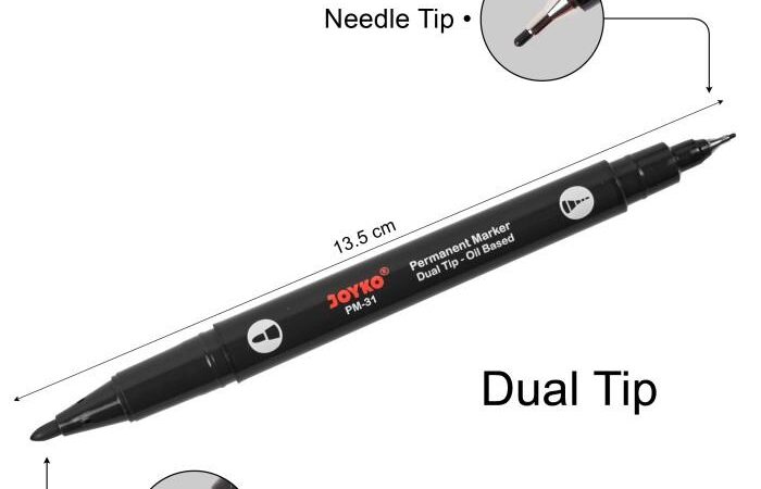 Tingkatkan kreativitas dan produktivitas Anda dengan Joyko Permanent Marker Dual Tip. Spidol permanen andalan ini dirancang dengan dua mata pena serbaguna dalam satu bodi. Needle Tip yang presisi cocok untuk detil rumit dan tulisan rapi, sementara Fine Tip yang lebih lembut ideal untuk mengarsir dan menulis di area yang lebih luas.