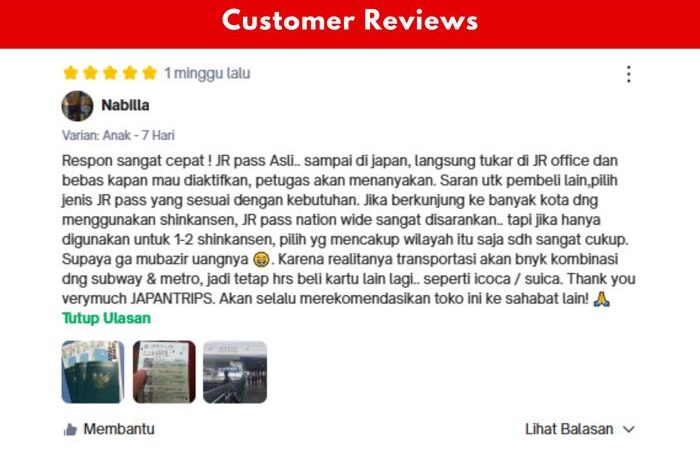 - Exchange Order: Dokumen voucher yang diterima setelah pembelian dan harus ditukarkan di Jepang untuk mendapatkan JR Pass yang sebenarnya.