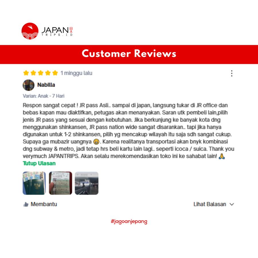 Nikmati kemudahan menjelajahi Jepang dengan JR Pass Nation Wide, tiket transportasi serbaguna yang berlaku di hampir seluruh wilayah Jepang. Cukup beli sekali, dan Anda bisa mengakses berbagai moda transportasi, termasuk: