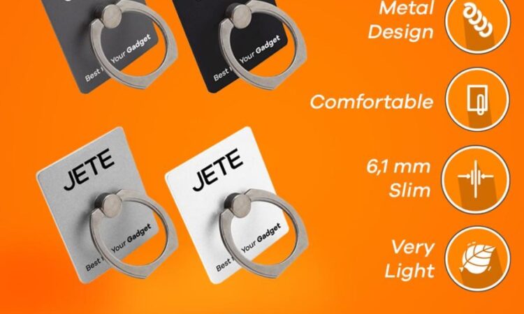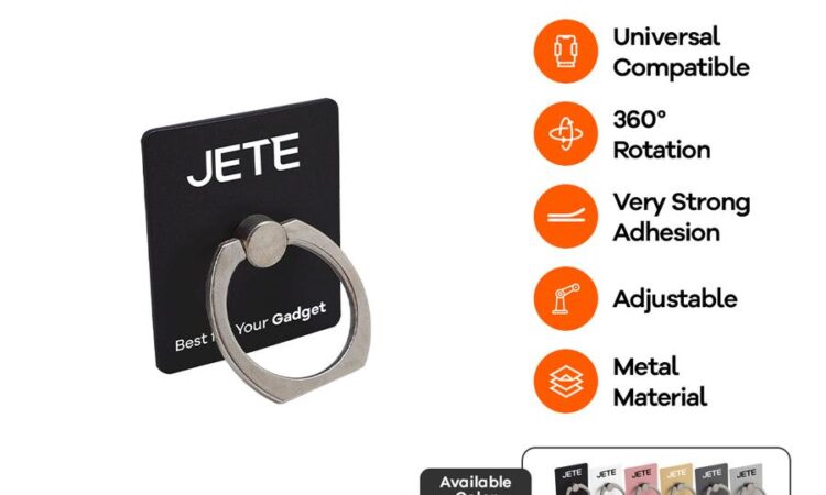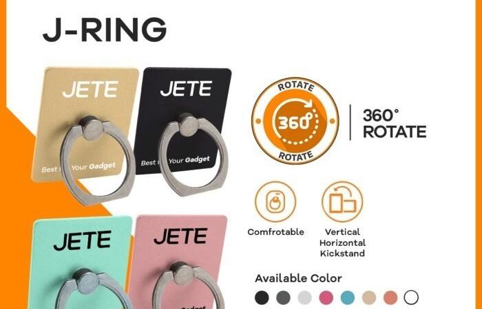 Ring Holder HP adalah aksesori praktis untuk smartphone atau tablet yang dirancang untuk meningkatkan kenyamanan dan keamanan penggunaan sehari-hari. Dengan fitur pegangan yang ergonomis, aksesori ini membantu mencegah smartphone terjatuh saat digenggam. Selain itu, J-Ring JETE juga berfungsi sebagai kickstand yang memungkinkan Anda menonton video dalam posisi horizontal maupun vertikal dengan stabil.