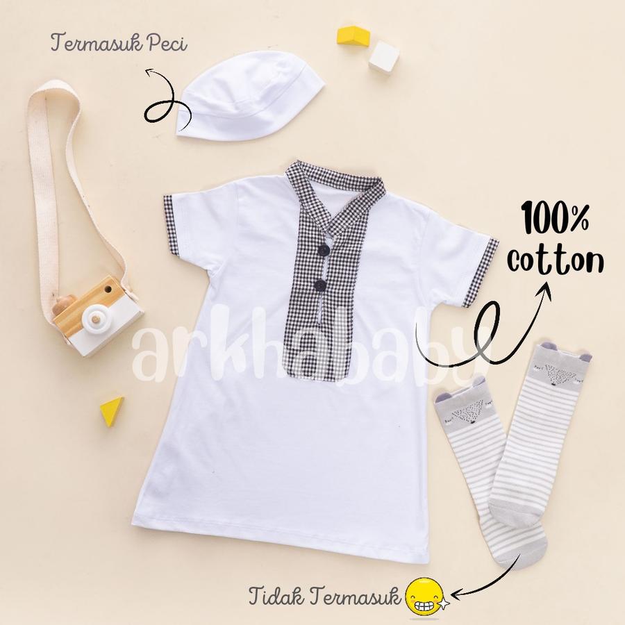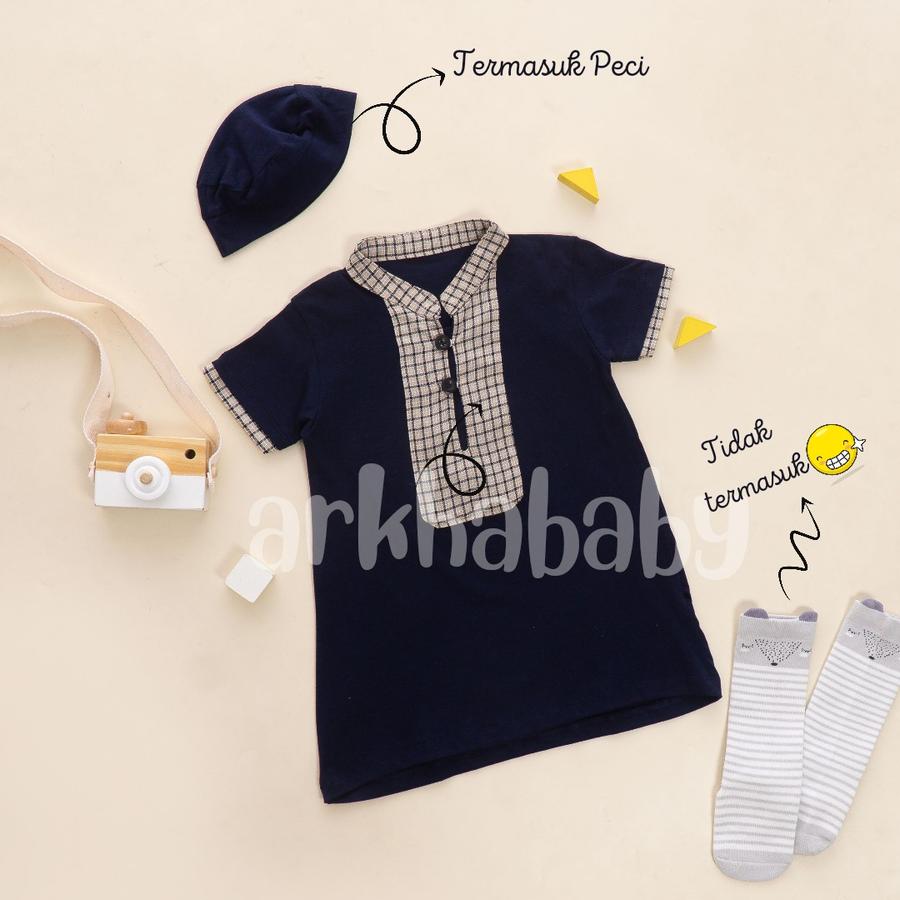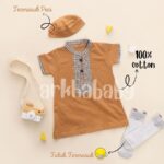 Bahan kaos katun super lembut dan halus, cocok untuk kulit sensitif bayi. Desain unik dengan gamis + peci, memberikan kesan islami yang elegan. Tersedia dalam berbagai pilihan warna cerah dan netral untuk penampilan si kecil semakin menggemaskan.