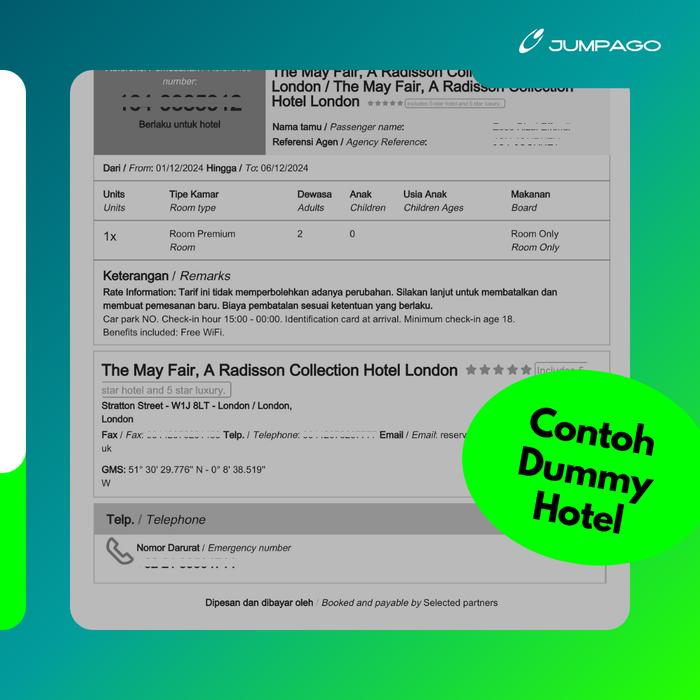 | Dummy Hotel | Bukti reservasi akomodasi untuk melengkapi itinerari perjalanan (tersedia untuk destinasi domestik dan internasional). |