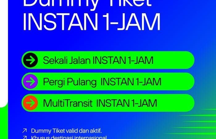 | Dummy Tiket Pergi Pulang | Untuk perjalanan pulang-pergi dari tempat asal ke destinasi dan kembali lagi, dengan harga terjangkau (internasional). |