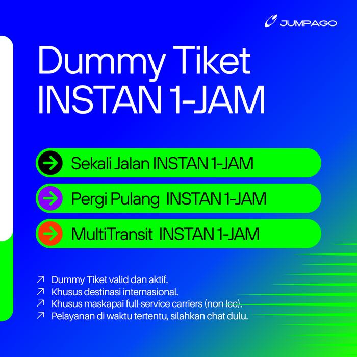 - INSTAN 1-JAM: Dummy Tiket dikirimkan ke email Anda dalam waktu 1 jam kerja setelah pemesanan dan konfirmasi pembayaran.