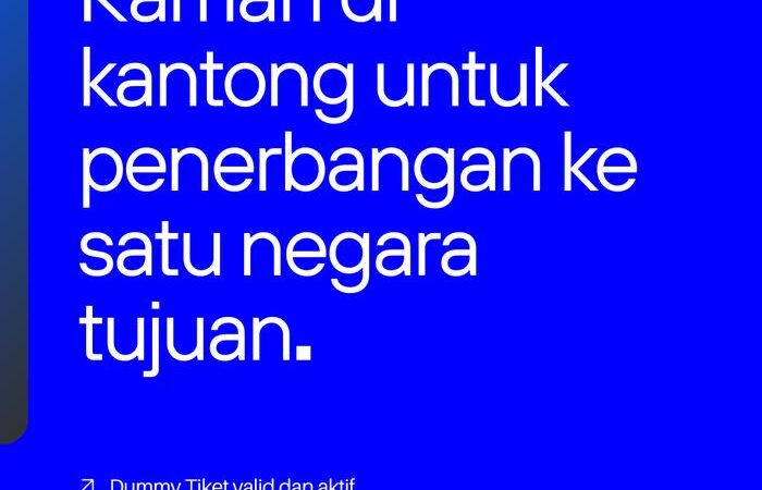 Tersedia untuk berbagai tujuan internasional. Dummy tiket ini khusus dirancang untuk keperluan dokumen perjalanan satu kali.