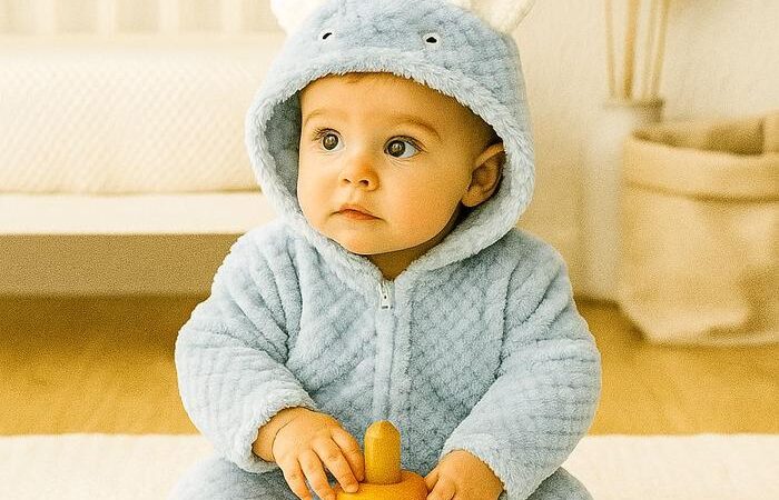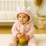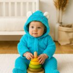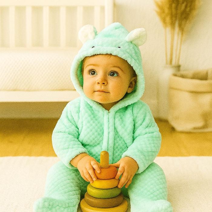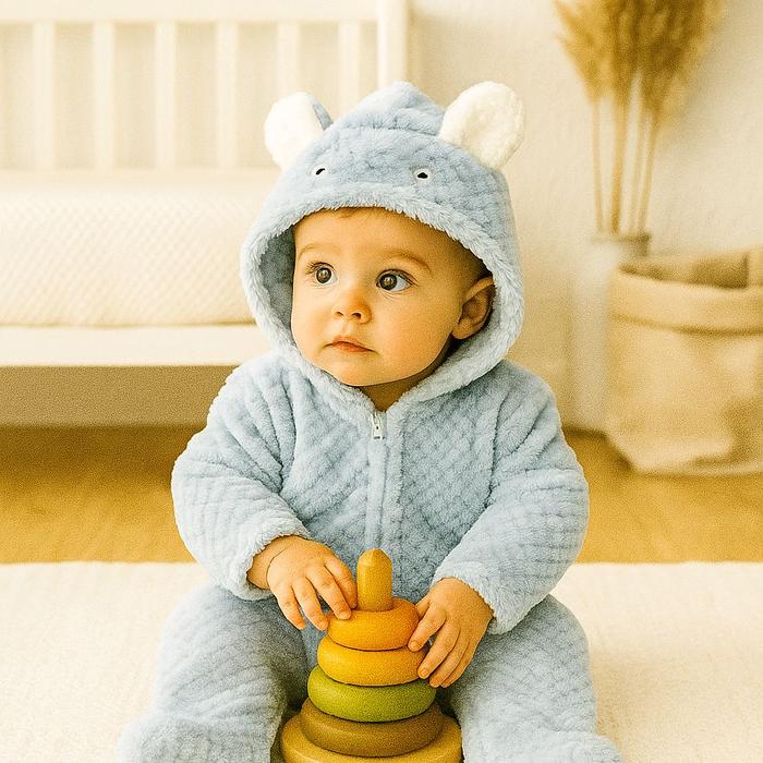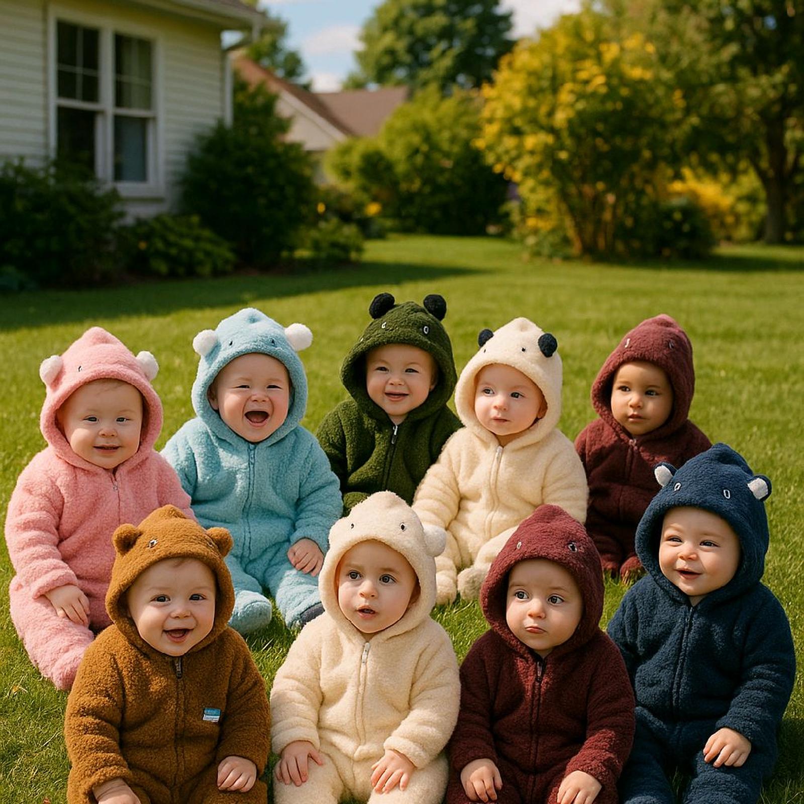 Terbuat dari bahan beludru halus premium yang sangat lembut di kulit sensitif bayi dan tidak mudah berudul (mudah rontok bulunya). Desain satu set dilengkapi kupluk yang membuat penampilan bayi semakin menggemaskan, cocok untuk bepergian maupun foto studio.