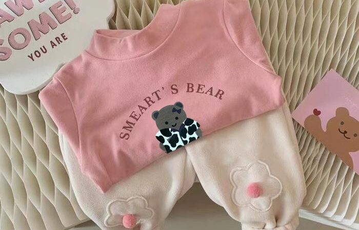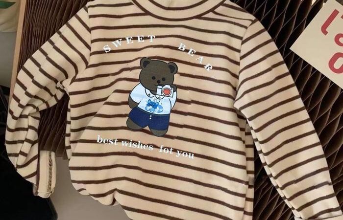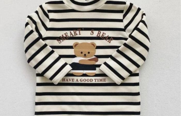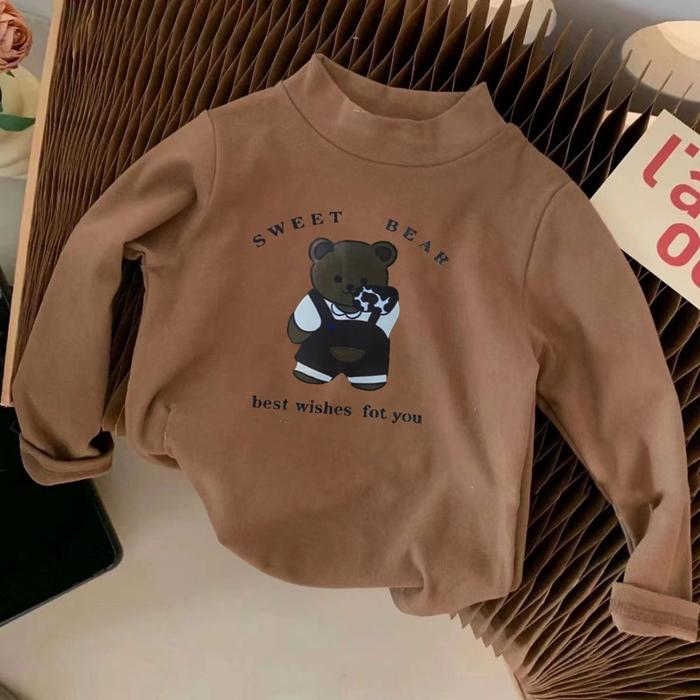Baju anak lengan panjang dengan motif teddy bear yang menggemaskan, nyaman dipakai sehari-hari atau untuk tidur. Terbuat dari bahan berkualitas tinggi dengan komposisi 90% poliester dan 5% katun, menjadikannya lembut, halus, dan tidak mudah kusut. Desain unisex dengan kerah O-neck cocok untuk bayi dan balita usia 0-6 tahun.