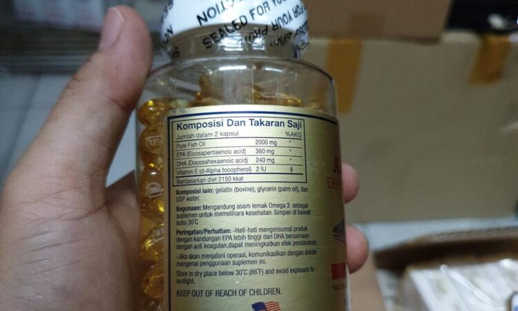 | Nutrisi per Kapsul | EPA 360mg, DHA 240mg, Vitamin E 2 IU |