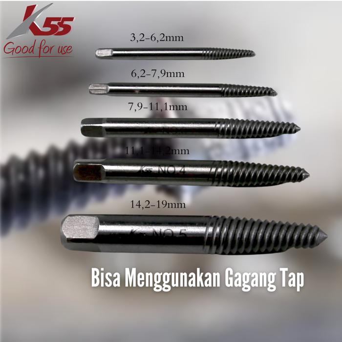 Produk ini terbuat dari bahan hardening tool steel berkualitas tinggi, menjamin kekuatan dan keawetan yang luar biasa. Dengan desain ulir yang tajam dan presisi, alat ini mampu mencengkeram kuat inti baut yang telah dibor sebelumnya, memudahkan proses pengeluaran tanpa merusak ulir di sekitarnya.