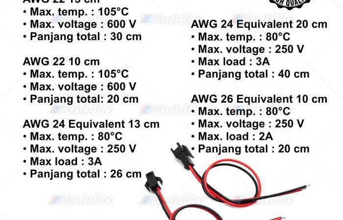 - AWG (American Wire Gauge): Standar pengukuran ketebalan kawat. Angka yang lebih kecil (seperti AWG 22) menunjukkan kawat yang lebih tebal dan mampu menghantarkan arus yang lebih besar dibandingkan angka yang lebih besar (seperti AWG 26).