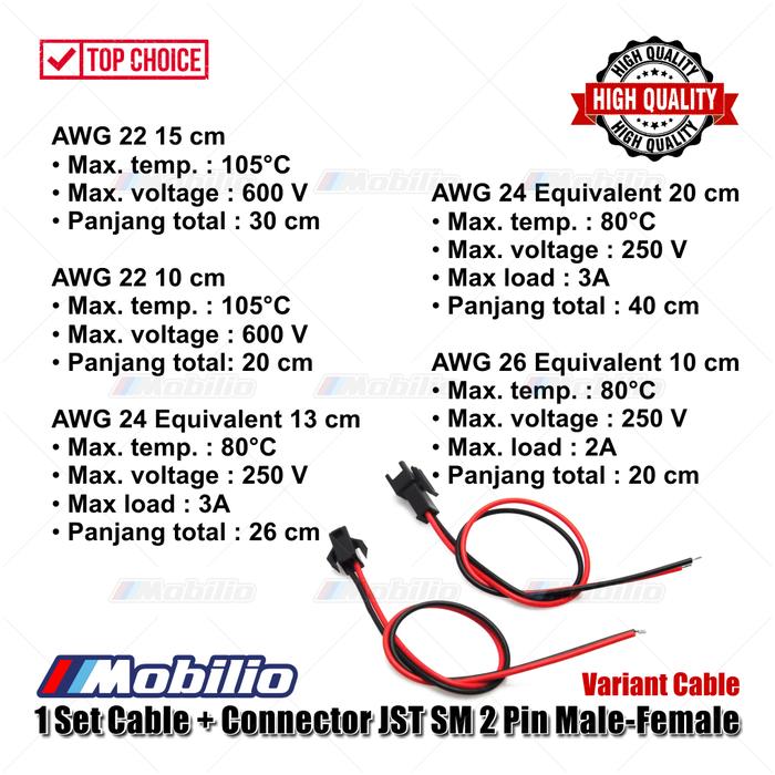 1 set sudah termasuk 1 kabel dengan konektor JST SM Male dan 1 kabel dengan konektor JST SM Female.