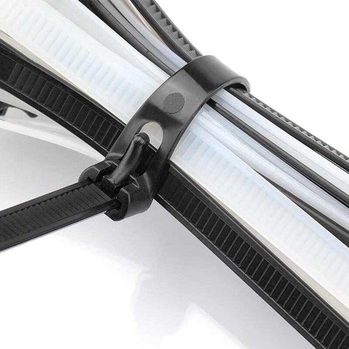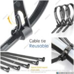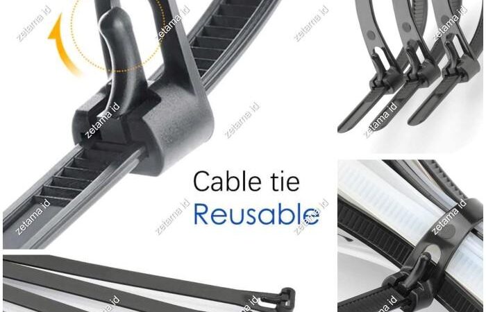 • Kabel Ties Releasable/Reusable: Jenis pengikat kabel yang dapat dibuka dan digunakan kembali berulang kali, berbeda dengan kabel ties tradisional yang bersifat sekali pakai (permanent). Biasanya memiliki pengait atau mekanisme khusus untuk membukanya tanpa merusak produk.