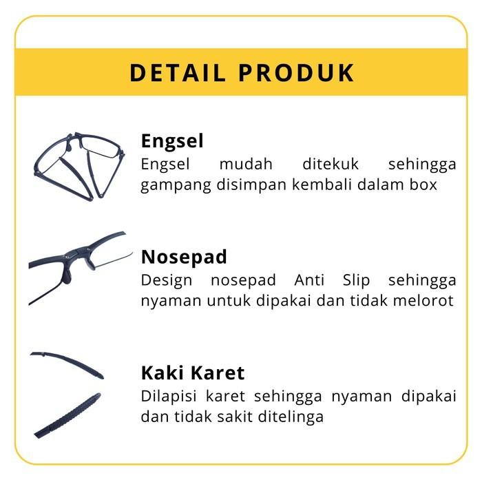 Berikut detail produk kacamata baca lipat unisex dengan fitur lengkap dan harga terjangkau:
