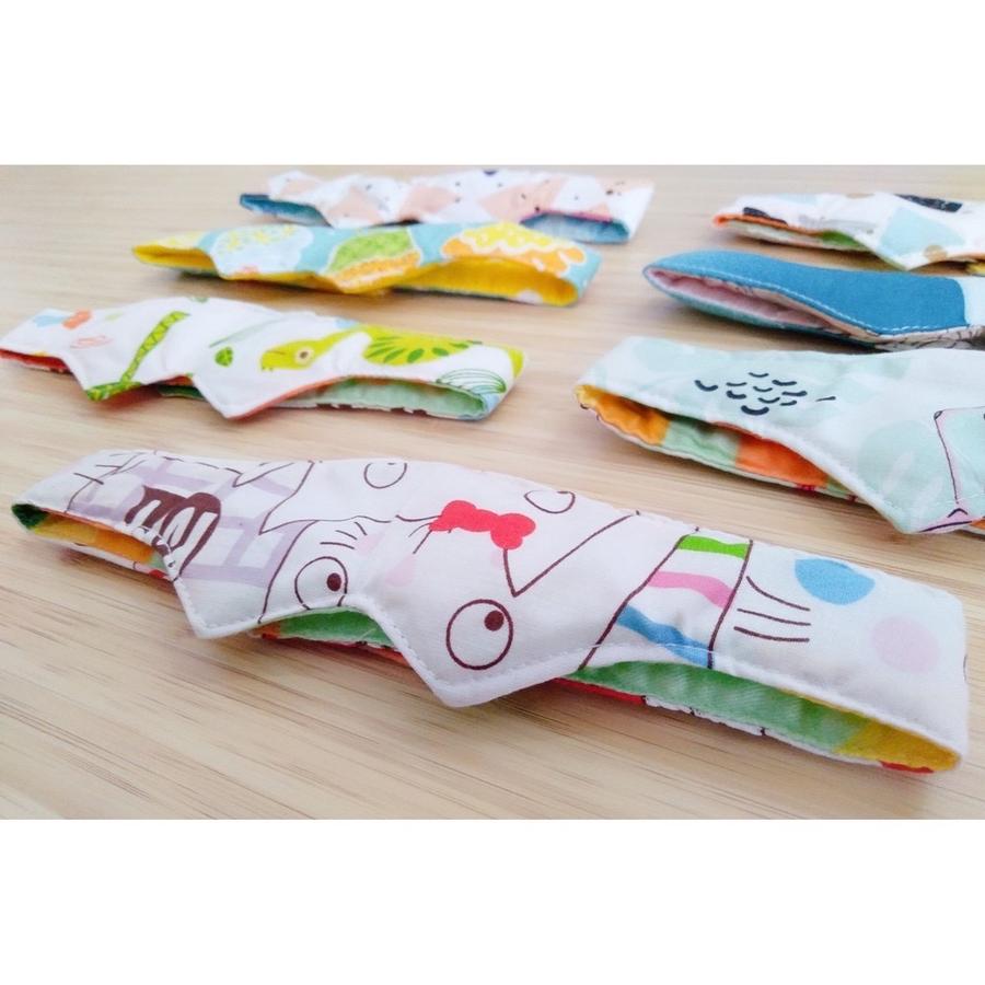 - Bahan katun halus, nyaman digunakan tanpa risiko iritasi pada kulit kepala bayi.