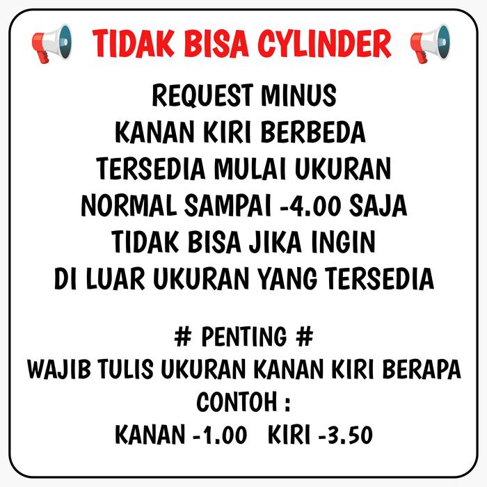 | Ukuran Lensa | -0.50 hingga -4.00 (di luar rentang ini tidak tersedia) |