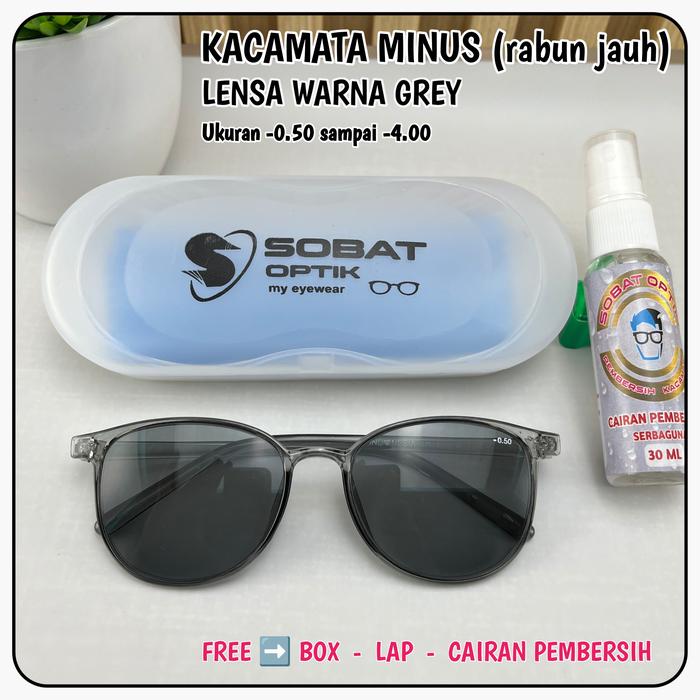 Tampil stylish sekaligus jaga kesehatan mata dengan kacamata minus rabun jauh lensa warna grey. Dirancang untuk pria dan wanita, kacamata ini adalah solusi praktis untuk aktivitas sehari-hari dengan perlindungan optimal.