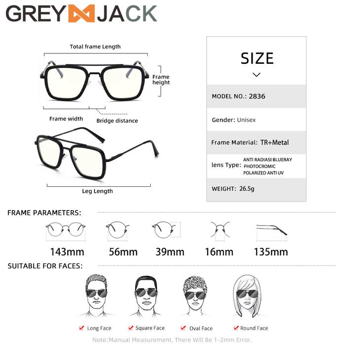Tampil stylish dan maksimal dalam melindungi mata dengan kacamata unisex yang terinspirasi dari gaya Tony Stark ini. Dibuat dari bahan TR90 dan metal yang menjadikannya sangat ringan, lentur, serta tahan lama untuk kenyamanan beraktivitas sepanjang hari.