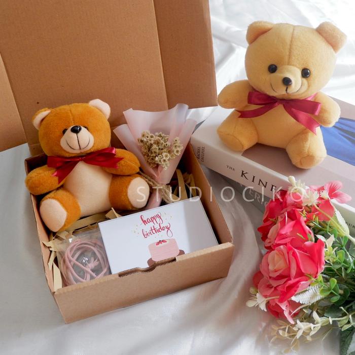 | Paket For Her Oky | Boneka Mini Tedy, Mini Buket Dried Flower, Pocky | Free Kartu Ucapan (request di catatan) |