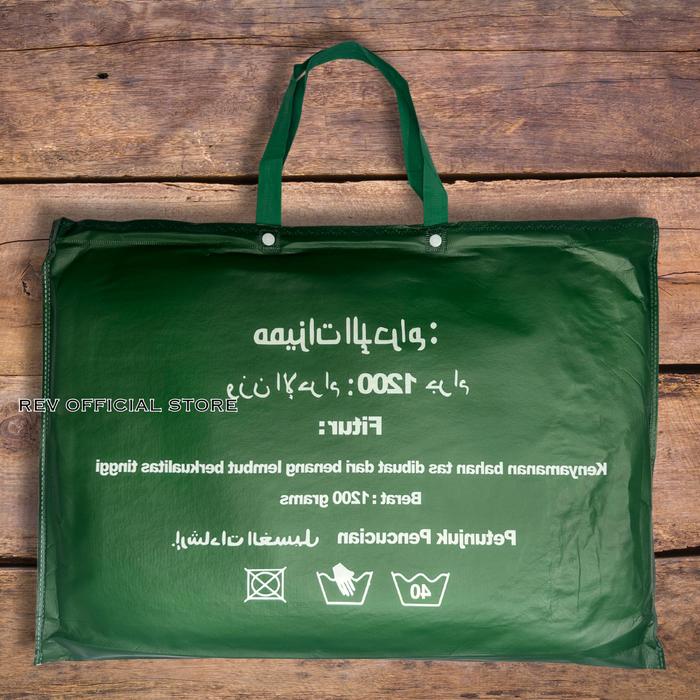| Saran Penggunaan | Gunakan sabuk atau ikat pinggang haji untuk mengencangkan ikatan kain bagian bawah |