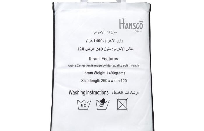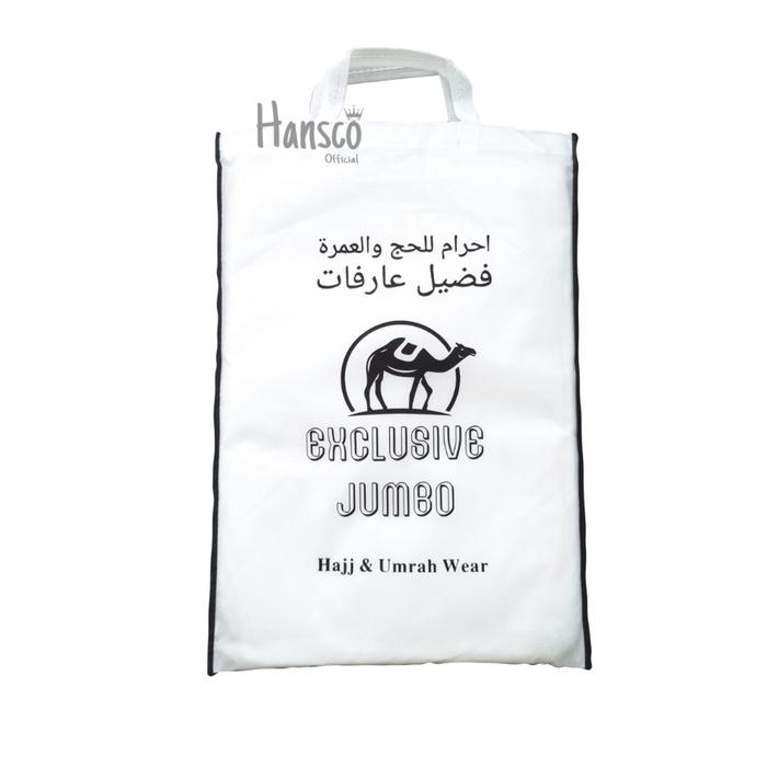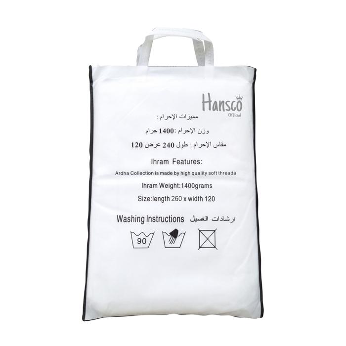 Isi Kemasan2 Lembar kain ihram (untuk atasan dan bawahan) + 1 Tas putih eksklusif